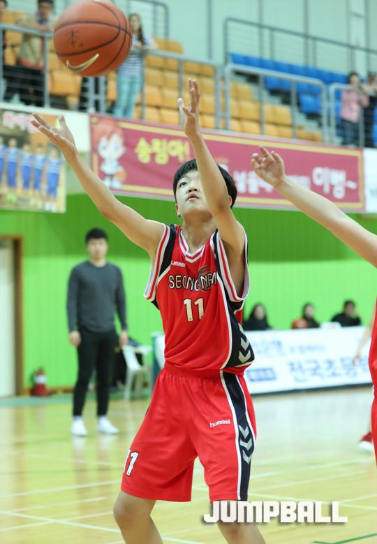 26일 강원 평창국민체육센터에서 열린 제16회 전국초등학교 농구대회 남초부 예선 사흘째 송림초교와 성남초교의 경기에서 후보 선수들까지 고루 기용한 송림초교가 43-31로 승리를 거두고 결선 진출을 확정지었다.
