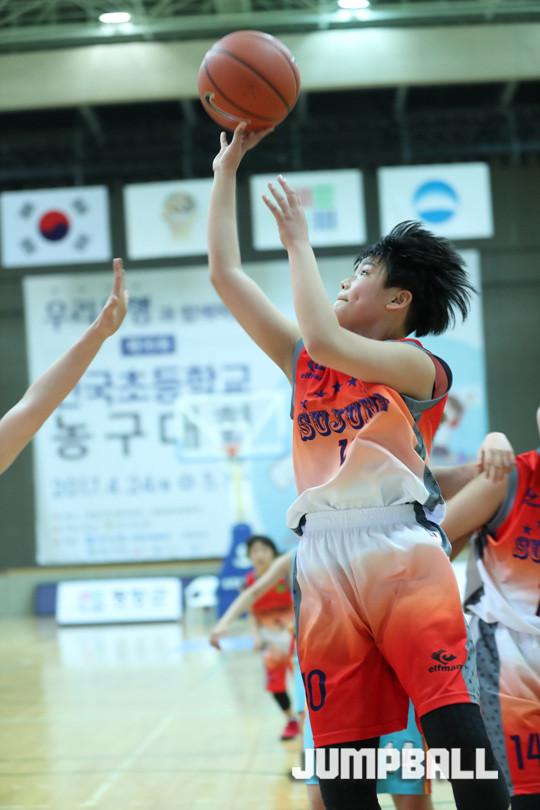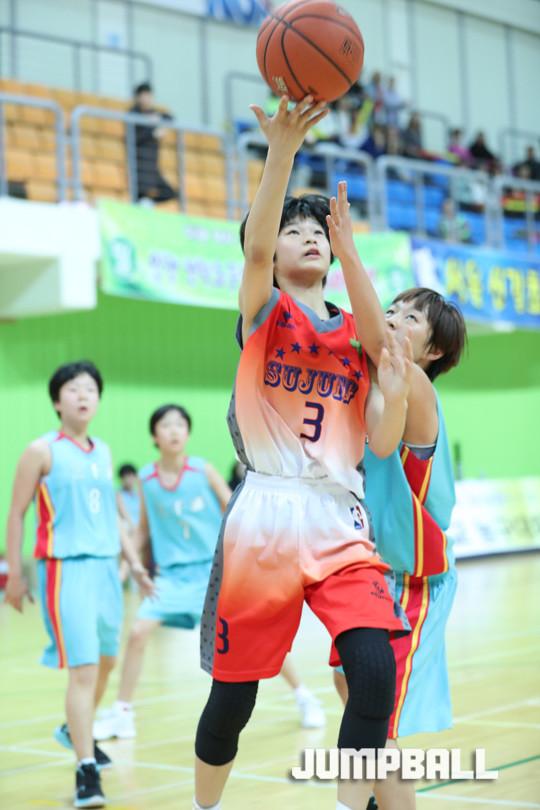 30일 강원 평창국민체육센터에서 열린 제16회 전국초등학교 농구대회 여초부 준결승전에서 강력한 우승후보 성남 수정초교가 경기 내내 상대를 압도한 끝에 40-22로 삼천포초교를 꺾고 결승에 선착했다.