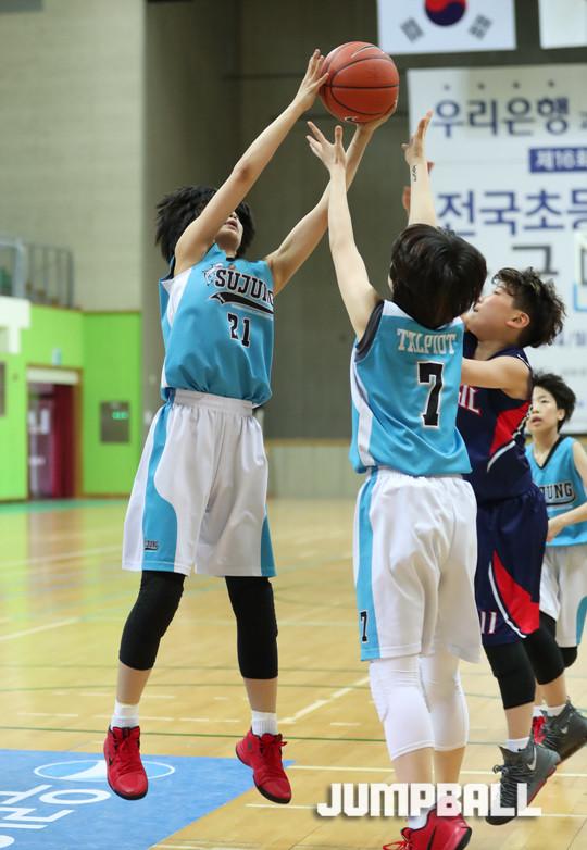 1일 강원 평창국민체육센터에서 열린 제16회 전국초등학교 농구대회 여초부 결승전, 지난 시즌 3위에 그쳤던 성남 수정초교가 32-13으로 신길초교를 꺾고 3년만에 우승컵을 되찾았다.