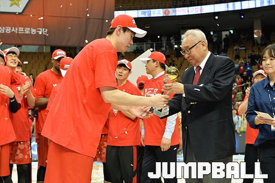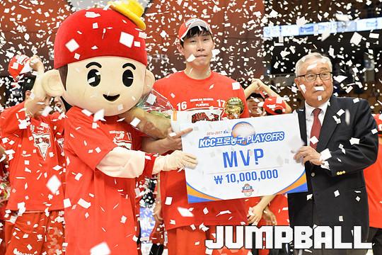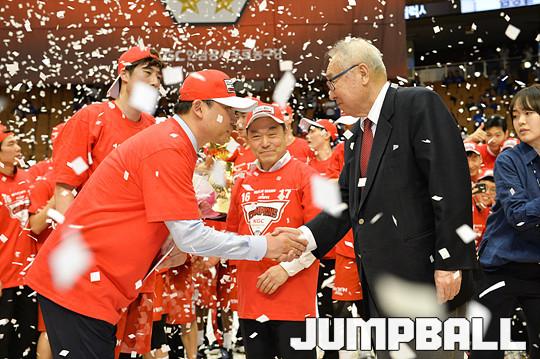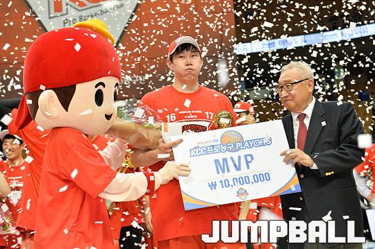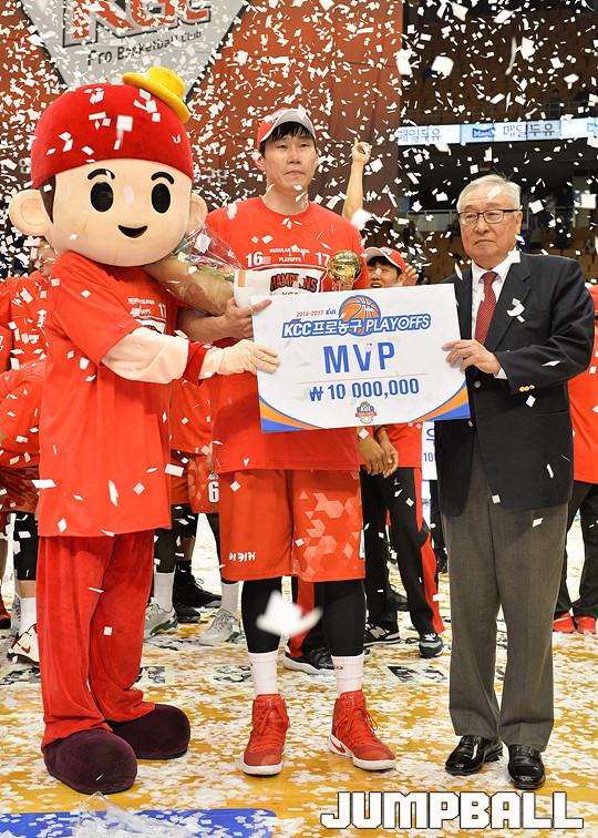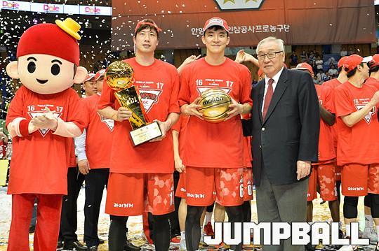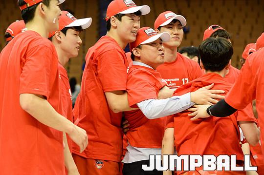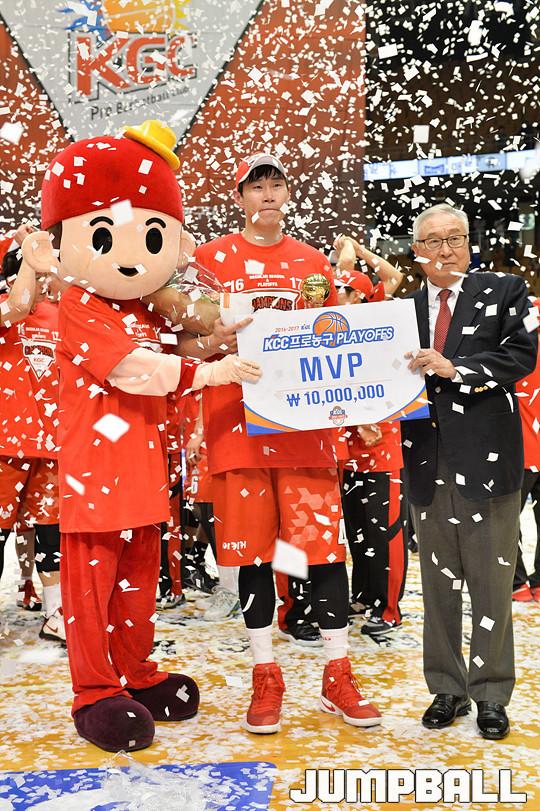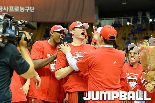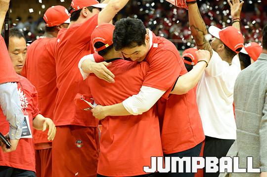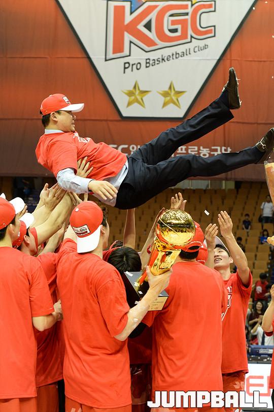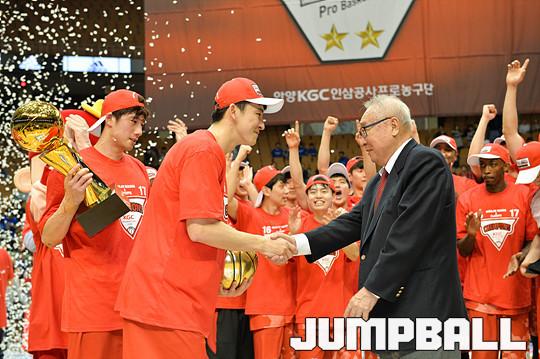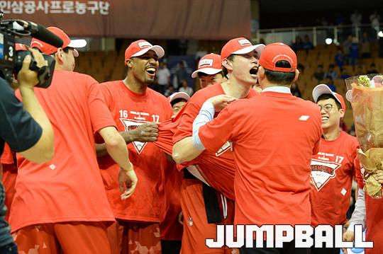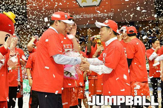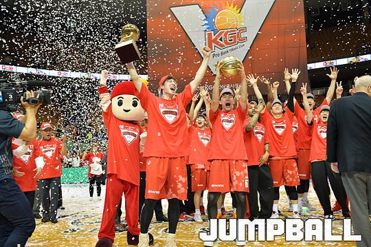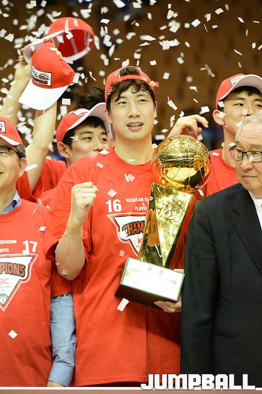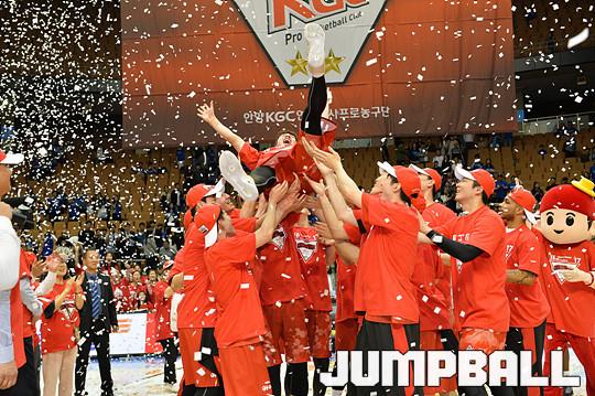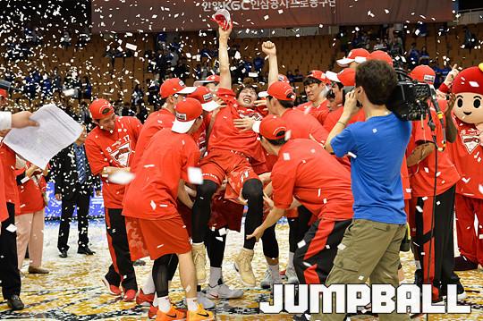 [점프볼=잠실실내체/유용우 기자] 02일 잠실 실내체육관에서 열린 서울 삼성과 안양 KGC 인삼공사의 '2016-2017 KCC 프로농구' 챔피언 결정전 6차전 경기, KGC 인삼공사가 삼성을 88-86으로 이기며 챔피언 트로피의 주인공이 되었다. KGC 인삼공사의 우승 세레머니 화보