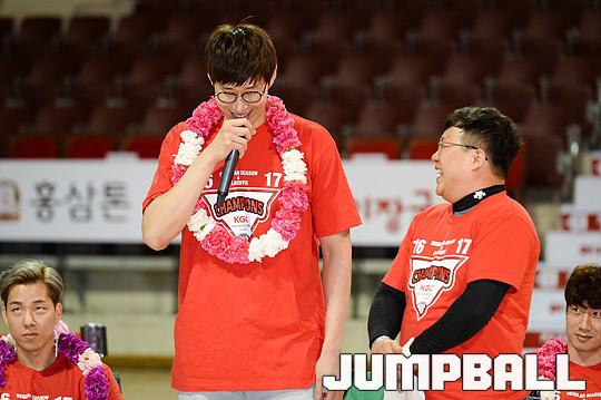 [점프볼=안양실내체/유용우 기자] 04일 안양 실내체육관에서 안양 KGC 인삼공사의 챔피언스데이 행사가 열렸다. 이번 챔피언스 데이는 안양 홈 팬들에게 전달하는 우승 트로피 헌정식으로 시작해 그 어느 때보다 치열했던 챔프전 영상과 스토리를 팬들과 함께 돌아보는 시간은 물론 다양한 이벤트, EDM 파티 등으로 팬들과 우승의 기쁨을 나눴다.