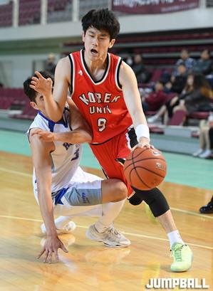 10일 고려대 화정체육관에서 열린 2017 남녀 대학농구리그에서 고려대와 한양대의 경기, 고려대 박준영이 골밑 중앙을 파고들어 가볍게 점프해서 슛을 시도하고 있다.