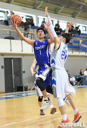26일 신촌 연세대 체육관에서 열린 2017 남녀 대학농구리그에서 연세대와 한양대의 경기, SK최준용과 경복고 후배 양재민이 연세대 경기를 관전하고 있다.