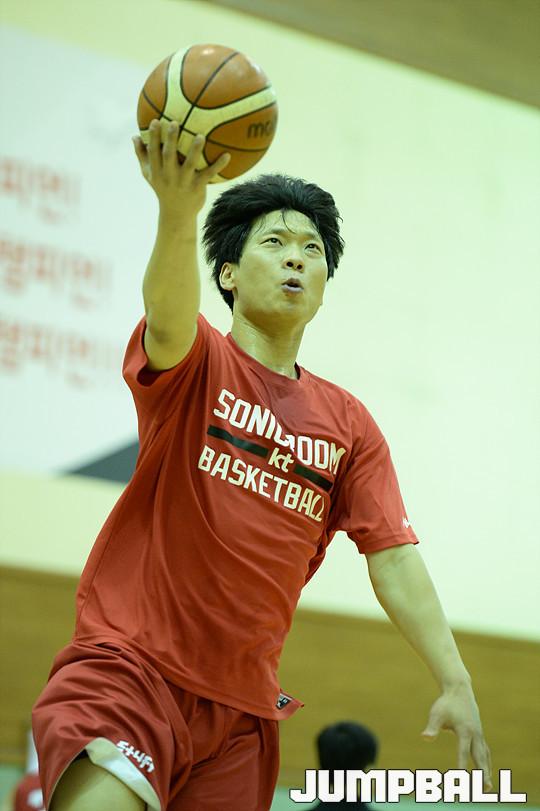 [점프볼=수원/유용우 기자] 29일 수원에 위치한 올레 빅토리움에서 진행중인 kt의 비시즌 훈련현장, kt는 고려대와의 연습경기를 통해 실전 경기 감각을 끌어 올리고 있었다. kt는 지속적인 실시간 심박측정을 통해 선수들의 기량 향상과 부상 방지를 목표로 훈련을 진행하고 있다. kt 박상오가 가볍게 레이업을 올리며 워밍업을 하고 있다.