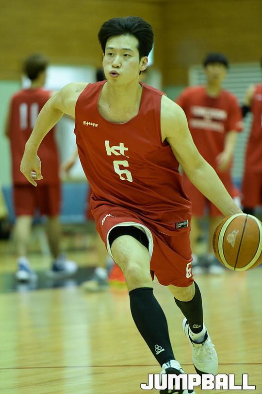 [점프볼=수원/유용우 기자] 29일 수원에 위치한 올레 빅토리움에서 진행중인 kt의 비시즌 훈련현장, kt는 고려대와의 연습경기를 통해 실전 경기 감각을 끌어 올리고 있었다. kt는 지속적인 실시간 심박측정을 통해 선수들의 기량 향상과 부상 방지를 목표로 훈련을 진행하고 있다. kt 김우람이 워밍업을 하고 있다.