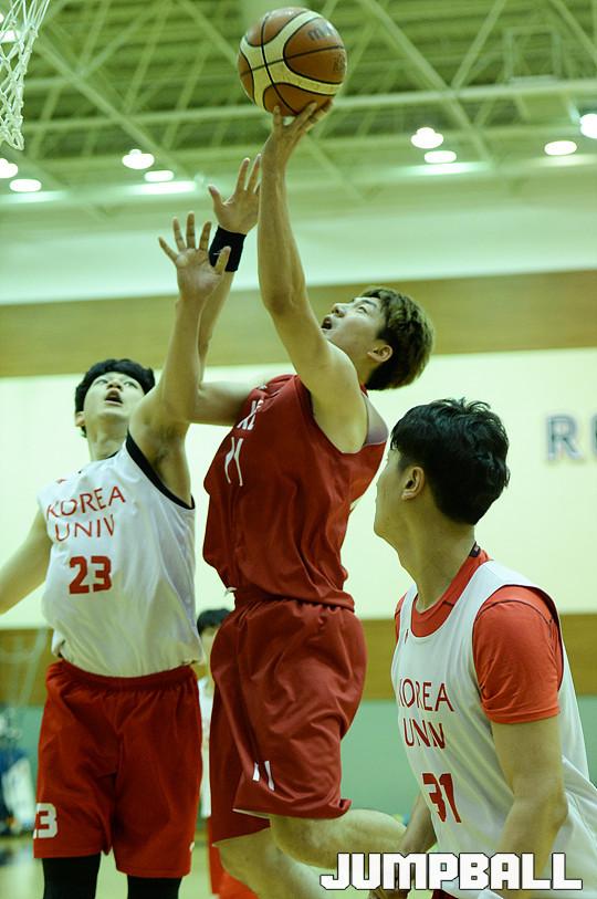 [점프볼=수원/유용우 기자] 29일 수원에 위치한 올레 빅토리움에서 진행중인 kt의 비시즌 훈련현장, kt는 고려대와의 연습경기를 통해 실전 경기 감각을 끌어 올리고 있었다. kt 박철호가 슛을 시도하고 있다.