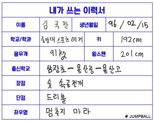 [점프볼=강현지 기자] 2017년 신인 드래프트에 도전하는 ‘예비 프로’가 쓰는 취업 이력서. 3탄의 주인공은 중앙대 김국찬(22, 192cm)이다. 용산중-용산고를 거친 그는 센터부터 최근에는 2번(슈팅가드)으로도 영역을 넓혔다. 다양한 포지션을 소화하며 우여곡절도 있었다. 1편에서는 성장 과정, 경력사항에 초점을 맞춰 그의 이야기를 들어봤다.