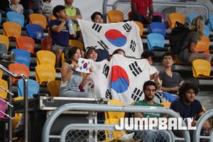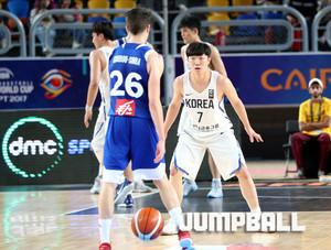 한국 시간 5일 새벽 이집트 카이로 스타디움에서 열린 2017 FIBA U19남자 농구 월드컵 한국과 프랑스의 예선 마지막 경기, 한국 U19남자 농구 대표팀 장덕영 단장이 공격에 실패하자 아쉬움을 몸으로 표현하고 있다.