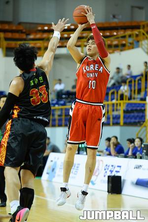 [점프볼=영광/유용우 기자] 05일 영광스포티움 국민체육센터에서 열린 '제33회 MBC배 전국대학농구대회' 남자 대학1부 성균관대와 고려대의 경기, 고려대 박정현과 성균관대 이윤수가 리바운드를 위해 자리싸움을 하고 있다.