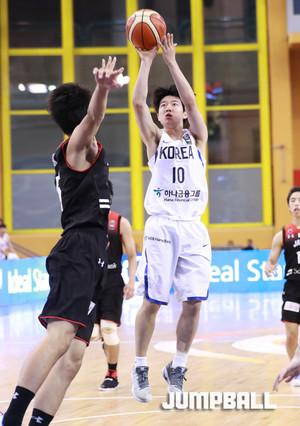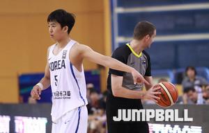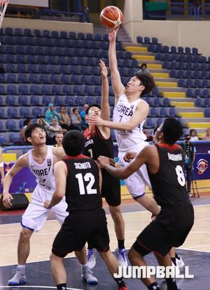 한국 시간 8일 이집트 카이로에서 열린 2017 FIBA U19남자 농구 월드컵, 한국과 이란의 순위 결정전에서 한국 U19남자 농구 대표팀 양재민이 이란 선수의 공격을 막아서고 있다.