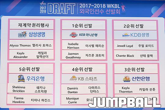 [점프볼=중구/유용우 기자] 10일 11시 신한은행 본점 대강당에서 개최된 '2017~2018 WKBL 외국인선수 선발회' 모든 지명이 완료 되었다.