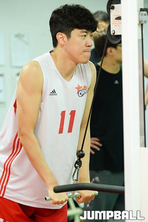 [점프볼=고양/유용우 기자] 11일 고양실내체육관 보조체육관에서 훈련하는 고양 오리온의 훈련현장을 찾았다. 이승현의 입대와 장재석의 공익공무로 빠지게 될 상황에서 고양 오리온은 문태종(42, 197cm)과 1년 연장계약하고, 송창무(35, 203cm), 민성주(30, 201cm)를 FA(자유계약) 시장에서 영입, 전력을 보강하였다. 오리온 장문호가 웨이트 트레이닝을 하고 있다.