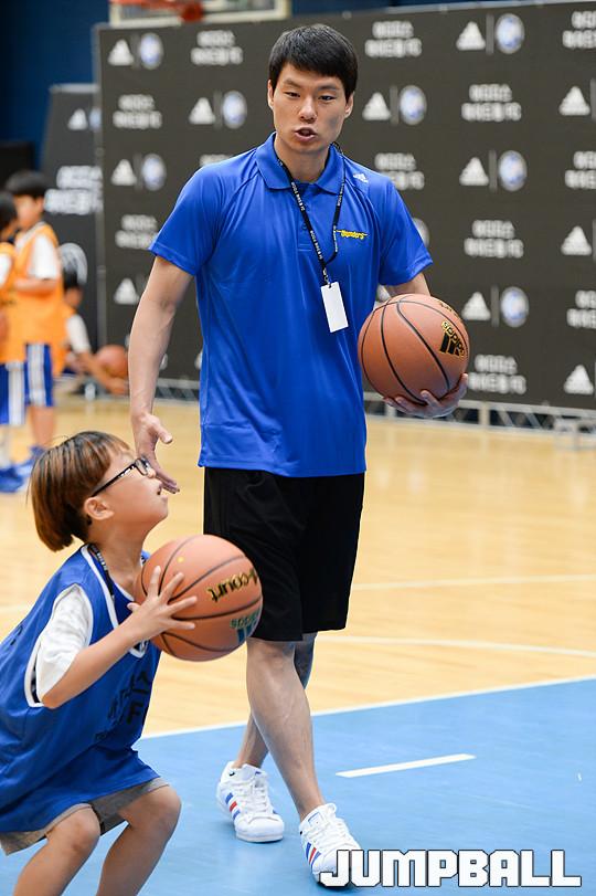 [점프볼=잠실/유용우 기자] 아디다스코리아와 서울삼성썬더스농구단와 함께하는 '아디다스 마이드림 FC ' 농구 클리닉이 12일 잠실 실내 체육관 서울삼성리틀썬더스 경기장에서 진행했다. 서울삼성썬더스의 김태형, 이동엽, 천기범 선수가 참여한 이번 클리닉은 초등학교 4,5,6 학년으로 구성된 20여 명의 ‘아디다스 마이드림 FC’ 학생들이 기본 훈련법부터 드리블, 패스, 슛팅 등 농구 실전 기술들을 삼성 선수들에게 배웠다. 삼성 김태형이 아이들에게 농구를 가르치고 있다.