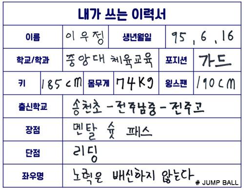 [점프볼=강현지 기자] 2017년 신인 드래프트에 도전하는 '예비 프로'가 쓰는 취업 이력서. 여섯 번째 주인공은 중앙대 이우정(22, 185cm)이다. 전반기 아쉬움을 삼킨 그는 하계유니버시아드 대회와, 대학리그 플레이오프를 통해 반전을 꿈꾼다. 대학생으로서 뛸 수 있는 마지막 대회, 그는 어떤 마음으로 준비하고 있을까.