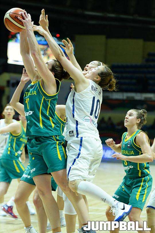 [점프볼=벵갈루루/유용우 기자] 23일 인도 벵갈루루에 위치한 스리칸티라바 스타디움에서 열린 '2017 FIBA 여자농구 아시아컵' 한국과 호주의 디비젼A 개막경기, 호주가 리바운드에 강점을 보이고 있다.