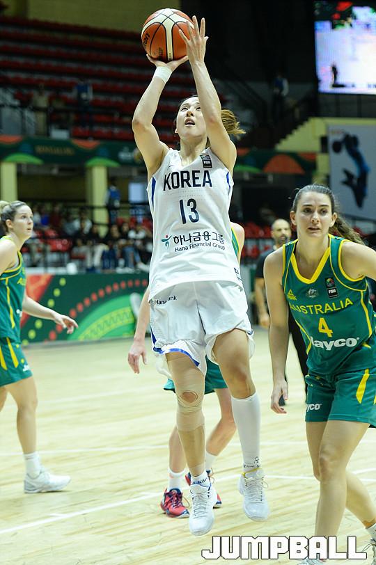 [점프볼=벵갈루루/유용우 기자] 23일 인도 벵갈루루에 위치한 스리칸티라바 스타디움에서 열린 '2017 FIBA 여자농구 아시아컵' 한국과 호주의 디비젼A 개막경기, 한국 김단비가 파울 상황에서 슛을 쏘고 있다.