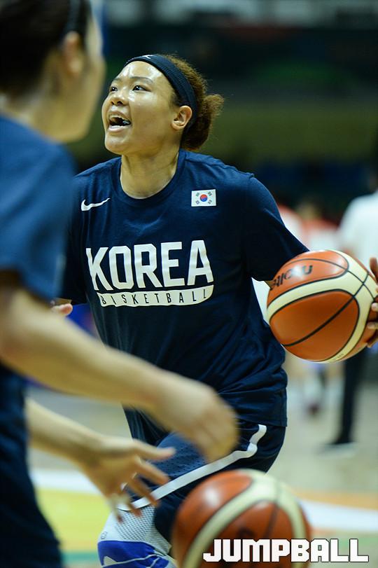 [점프볼=벵갈루루/유용우 기자] 24일 인도 벵갈루루에 위치한 스리칸티라바 스타디움에서 열린 '2017 FIBA 여자농구 아시아컵' 한국과 일본의 디비젼A 예선경기, 한국 김한별이 일본전을 준비하며 화이팅을 외치고 있다.