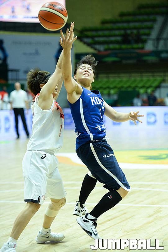 [점프볼=벵갈루루/유용우 기자] 24일 인도 벵갈루루에 위치한 스리칸티라바 스타디움에서 열린 '2017 FIBA 여자농구 아시아컵' 한국과 일본의 디비젼A 예선경기, 한국 심성영이 파울 상황에서 공격을 시도하고 있다.