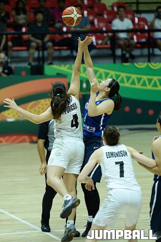[점프볼=벵갈루루/유용우 기자] 27일 인도 벵갈루루에 위치한 스리칸티라바 스타디움에서 열린 '2017 FIBA 여자농구 아시아컵' 한국과 뉴질랜드의 8강경기가 점프볼로 시작되고 있다.
