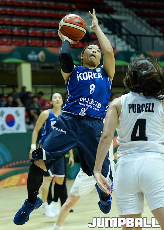 [점프볼=벵갈루루/유용우 기자] 27일 인도 벵갈루루에 위치한 스리칸티라바 스타디움에서 열린 '2017 FIBA 여자농구 아시아컵' 한국과 뉴질랜드의 8강경기, 여자농구대표팀 김한별이 슛을 시도하고 있다.