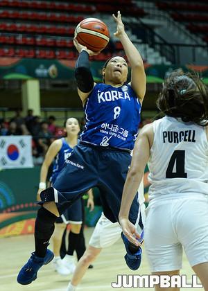 [점프볼=벵갈루루/유용우 기자] 27일 인도 벵갈루루에 위치한 스리칸티라바 스타디움에서 열린 '2017 FIBA 여자농구 아시아컵' 한국과 뉴질랜드의 8강경기, 여자농구대표팀 박지수가 뉴질랜드의 공격을 블록으로 저지하고 있다.