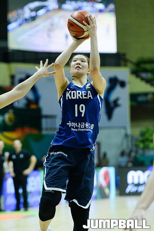 [점프볼=벵갈루루/유용우 기자] 27일 인도 벵갈루루에 위치한 스리칸티라바 스타디움에서 열린 '2017 FIBA 여자농구 아시아컵' 한국과 뉴질랜드의 8강경기, 여자농구대표팀 박지수가 슛을 쏘고 있다.
