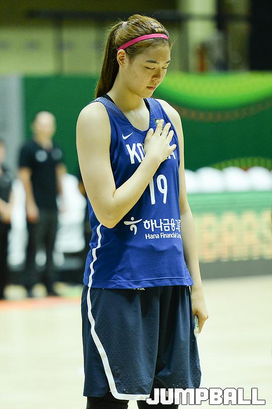 (사진설명) 대표팀 배혜윤은 몸싸움과 스크린 플레이등 굳은 플레이로 팀승리를 이끌었다.