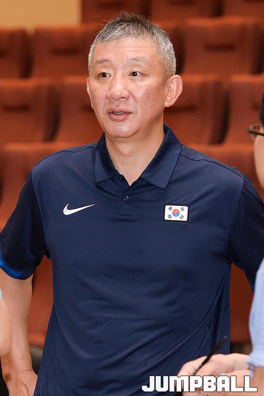[점프볼=진천/유용우 기자] 4일 진천선수촌 대강당에서 8월 8일부터 20일까지 레바논 베이루트에서 열리는 2017 FIBA 남자농구 아시아컵에 나설 남자농구대표팀이 결단식을 가졌다. 허재 감독이 미디어와 인터뷰를 하고 있다.