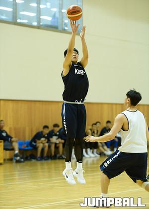 [점프볼=진천/유용우 기자] 4일 진천선수촌에서 아시아컵에 출전하는 남자농구대표팀과 유니버시아드대표팀의 연습경기가 열렸다. U대표팀 박지훈이 슛을 시도하고 있다.