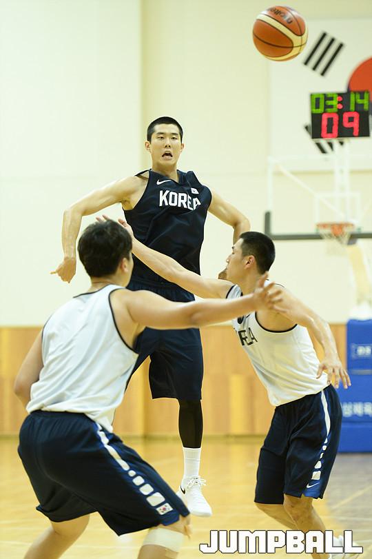 [점프볼=진천/유용우 기자] 4일 진천선수촌에서 아시아컵에 출전하는 남자농구대표팀과 유니버시아드대표팀의 연습경기가 열렸다. 남자농구대표팀 임동섭이 패스를 넣어주고 있다.