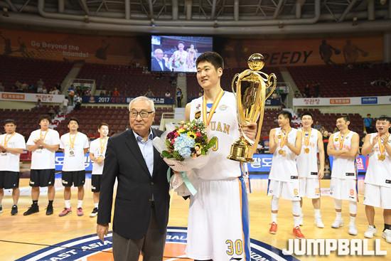 6일 안양실내체육관에서 열린 2017 정관장 동아시아 챔피언스컵으로 중국 쓰촨 핀셩과 대한민국 안양 KGC의 경기 후 시상식으로 KBL 김영기 총재가 중국 쓰촨 핀셩에 우승 트로피를 전달하고 기념촬영을 하고 있다.