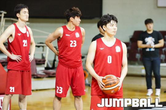 [점프볼=안양/홍기웅 기자] 9일 안양실내체육관에서 안양 KGC 인삼공사는 NBA G리그 이리 베이호크스의 스킬트레이너 라얀 머챈드를 초빙해 스킬 트레이닝 캠프를 열었다. KGC 선수들이 라얀 머챈드의 설명을 경청하고 있다.