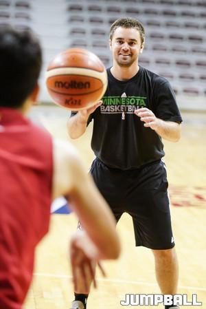 [점프볼=안양/홍기웅 기자] 9일 안양실내체육관에서 안양 KGC 인삼공사는 NBA G리그 이리 베이호크스의 스킬트레이너 라얀 머챈드를 초빙해 스킬 트레이닝 캠프를 열었다. KGC 선수들과 라얀 머챈드가 9일 훈련을 마치고자 서로 손을 모으고 있다.