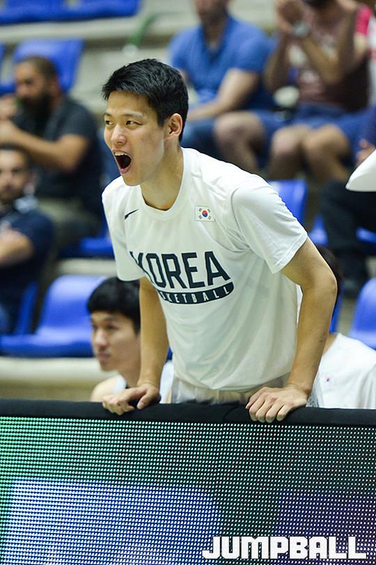 [점프볼=베이루트(레바논)/유용우 기자] 10일 레바논 베이루트, 노우하드 나우팔 체육관에서 열린 '2017 FIBA 아시아컵' 한국과 카자흐스탄의 조별 예선경기, 남자농구대표팀 김선형이 동료의 공격 성공에 환호하고 있다.