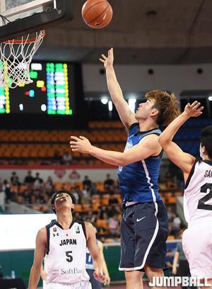 12일 잠실학생체육관에서 열린 '2017 아시아 퍼시픽 대학농구 챌린지' 3일차 일본과 한국의 경기에서 한국 김낙현이 동점 3점슛을 성공시키고 환한 미소를 짓고 있다.