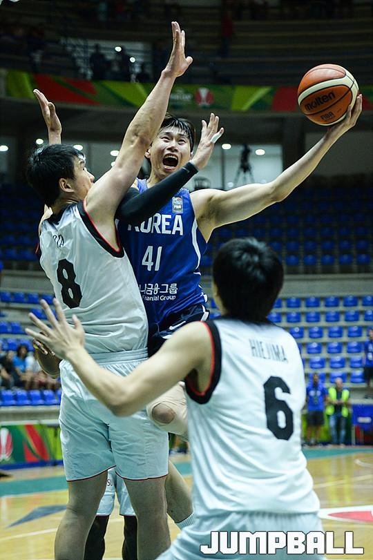 [점프볼=베이루트(레바논)/유용우 기자] 15일 레바논 베이루트, 노우하드 나우팔 체육관에서 열린 '2017 FIBA 아시아컵' 한국과 일본의 12강전 경기, 남자농구대표팀 오세근이 공격을 하고 있다.