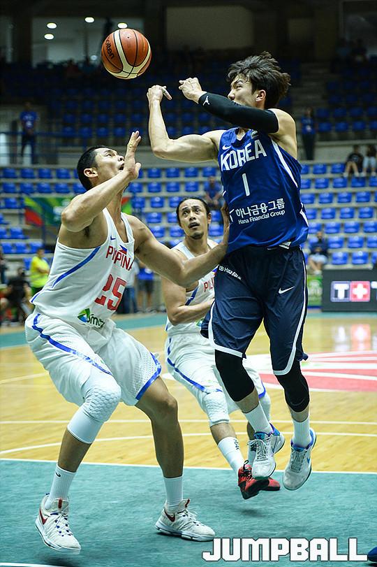 [점프볼=베이루트(레바논)/유용우 기자] 17일 레바논 베이루트, 노우하드 나우팔 체육관에서 열린 '2017 FIBA 아시아컵' 한국과 필리핀의 8강전 경기, 남자농구대표팀 박찬희가 패스를 빼고 있다.