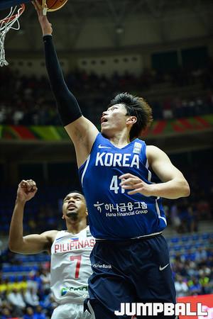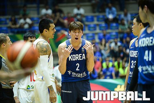[점프볼=베이루트(레바논)/유용우 기자] 17일 레바논 베이루트, 노우하드 나우팔 체육관에서 열린 '2017 FIBA 아시아컵' 한국과 필리핀의 8강전 경기, 남자농구대표팀 최준용이 필리핀의 도발에 기세 좋게 맞받아치고 있다.