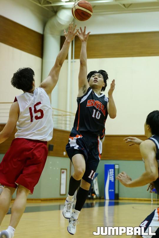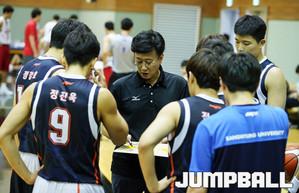 [점프볼=수원/홍기웅 기자] 17일 올레빅토리움에서 부산 KT 소닉붐과 상명대의 연습경기. 상명대 김성민이 과감하게 플루터 슛을 던지고 있다.