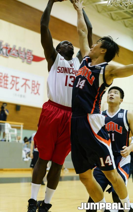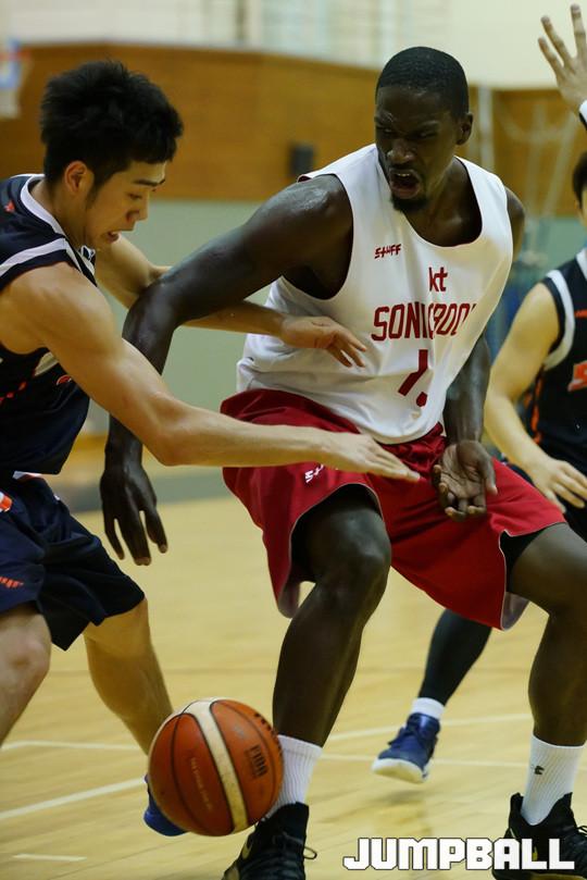 [점프볼=수원/홍기웅 기자] 17일 올레빅토리움에서 부산 KT 소닉붐과 상명대의 연습경기 화보.