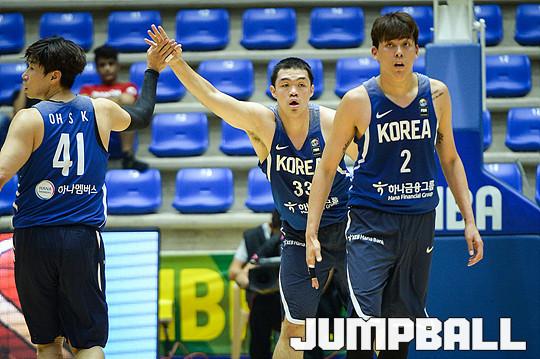 [JB포토] 하이파이브하는 대표팀 오세근과 이승현
