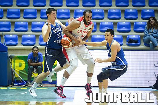 [점프볼=베이루트(레바논)/유용우 기자] 20일 레바논 베이루트, 노우하드 나우팔 체육관에서 열린 '2017 FIBA 아시아컵' 한국과 이란의 준결승 경기, 남자농구대표팀 이승현과 허웅이 이란 하다디를 수비하고 있다.