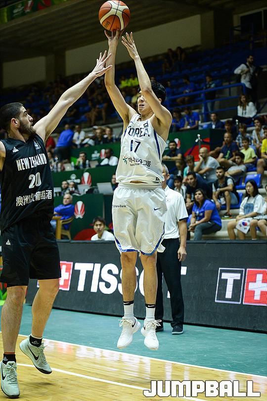 [점프볼=베이루트(레바논)/유용우 기자] 17일 레바논 베이루트, 노우하드 나우팔 체육관에서 열린 '2017 FIBA 아시아컵' 한국과 뉴질랜드의 3-4위 결정전, 남자농구대표팀 전준범이 3점슛을 쏘고 있다.