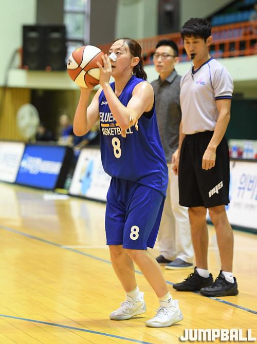 21일 강원도 속초실내체육관에서 열린 2017 우리은행 박신자컵 서머리그 개막전 용인 삼성생명 블루밍스와 인천 신한은행 에스버드의 경기에서 삼성생명 이주연이 외곽 3점라인에서 3점슛 정조준을 하고 있다.