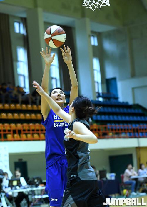 21일 강원도 속초실내체육관에서 열린 2017 우리은행 박신자컵 서머리그 개막전 용인 삼성생명 블루밍스와 인천 신한은행 에스버드의 경기에서 삼성생명 최희진이 골밑에서 수비를 제치고 여유있게 득점하고 있다.