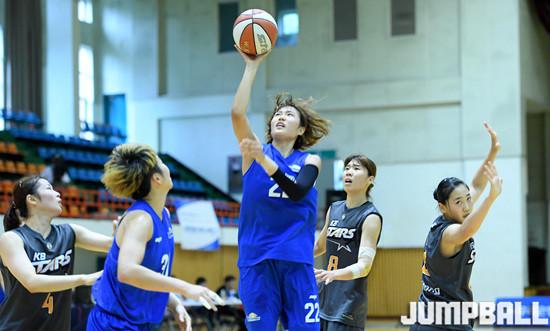 21일 강원도 속초실내체육관에서 열린 '2017 우리은행 박신자컵 서머리그' 구리 KDB생명과 청주 KB스타즈의 경기에서 KDB생명 구슬이 골밑을 파고을어 여유있게 득점을 하고 있다.
