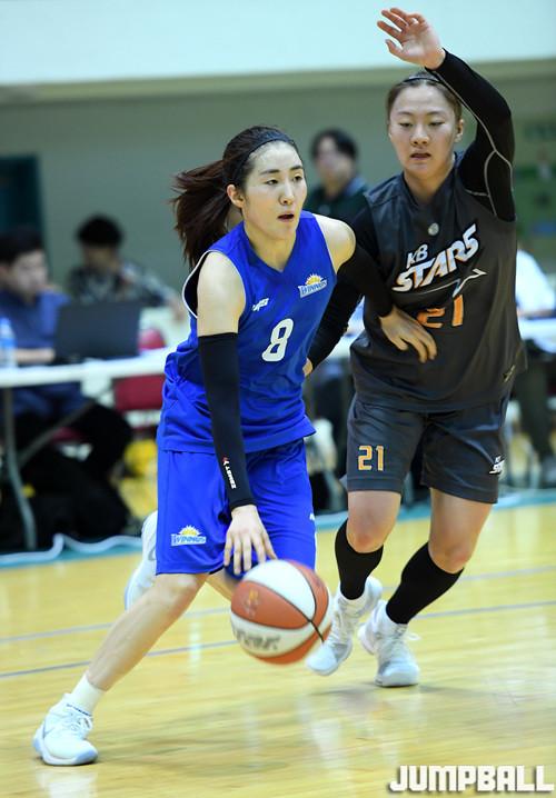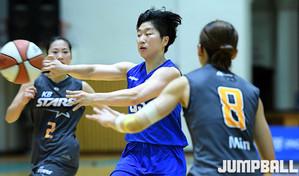 21일 강원도 속초실내체육관에서 열린 '2017 우리은행 박신자컵 서머리그' 구리 KDB생명과 청주 KB스타즈의 경기에서 KDB생명 노현지가 골밑 사이드에서 수비를 제치고 있다.