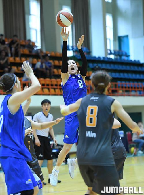21일 강원도 속초실내체육관에서 열린 '2017 우리은행 박신자컵 서머리그' 구리 KDB생명과 청주 KB스타즈의 경기에서 KDB생명 노현지가 골밑 중앙에서 수비를 뿌리치고 중거리슛을 시도하고 있다.