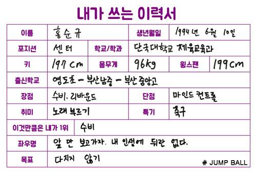 [점프볼=강현지 기자] 2017년 신인 드래프트에 도전하는 '예비 프로'의 취업 이력서. 열 번째 주인공은 단국대학교 홍순규(23, 197cm)다. 부산 중앙고의 부흥기를 이끈 홍순규가 단국대로 진학, 하도현과 강력한 더블포스트를 구축하기까지. 그가 걸어온 농구선수의 길을 살펴보고 2017년 KBL 국내신인선수 드래프트에 참가하는 각오를 들어봤다.
