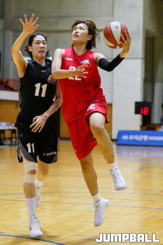 [점프볼=속초/홍기웅 기자] 26일 속초실내체육관에서 열린 2017 박신자컵 서머리그 신한은행 에스버드와 KDB생명위너스 경기. KDB생명 구슬이 레이업 슛을 던지고 있다.
